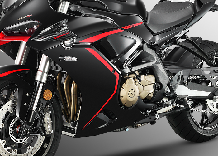 Acéptalo, siempre has soñado con una moto deportiva de 4 cilindros. La SRK 600 RC es tu entrada al exclusivo mundo de los tetracilíndricos en el segmento Sport.